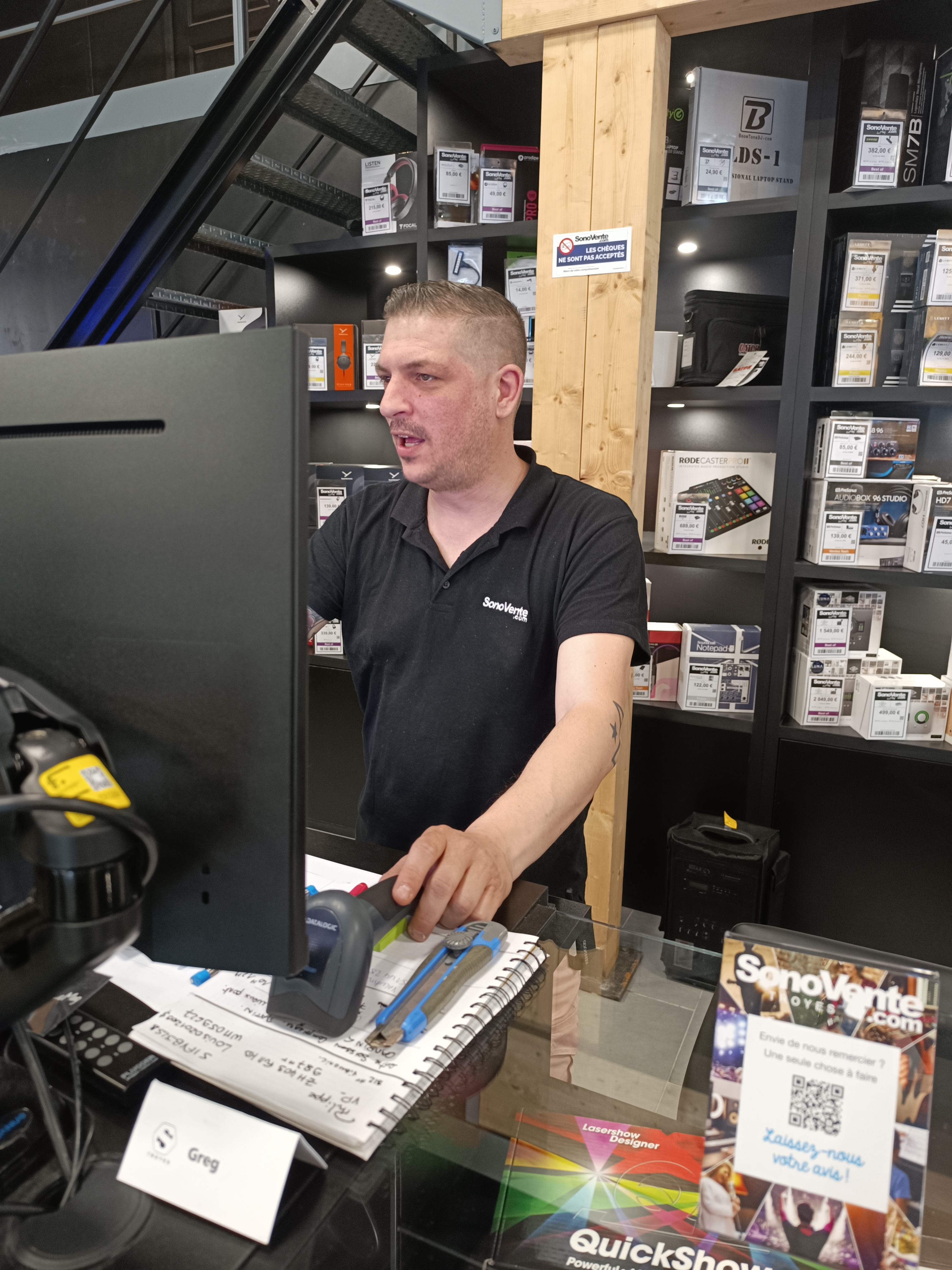 Posté le 19/05/2023 à 04:54"J'ai été conseillé par Greg ! il a été d'une écoute et d'un professionnalisme remarquable. Greg, a su m'expliquer et démontrer l'utilisation d'une régie Pionner avec efficacité :-) Grâce à ces explications et conseils j'ai pu réaliser ma prestation avec succès ! Merci à lui ! Je vous recommande ce magasin et son équipe :-))))"